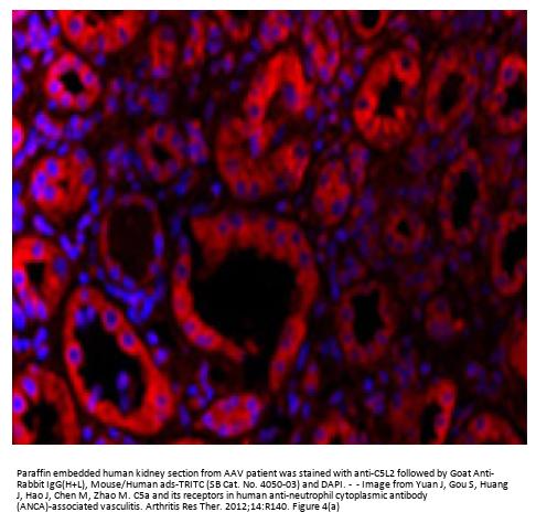 Goat Anti-Rabbit IgG(H+L)-TRITC antibody with minimal reactivity to mouse and human proteins for use in immunohistochemistry / immunocytochemistry assays.