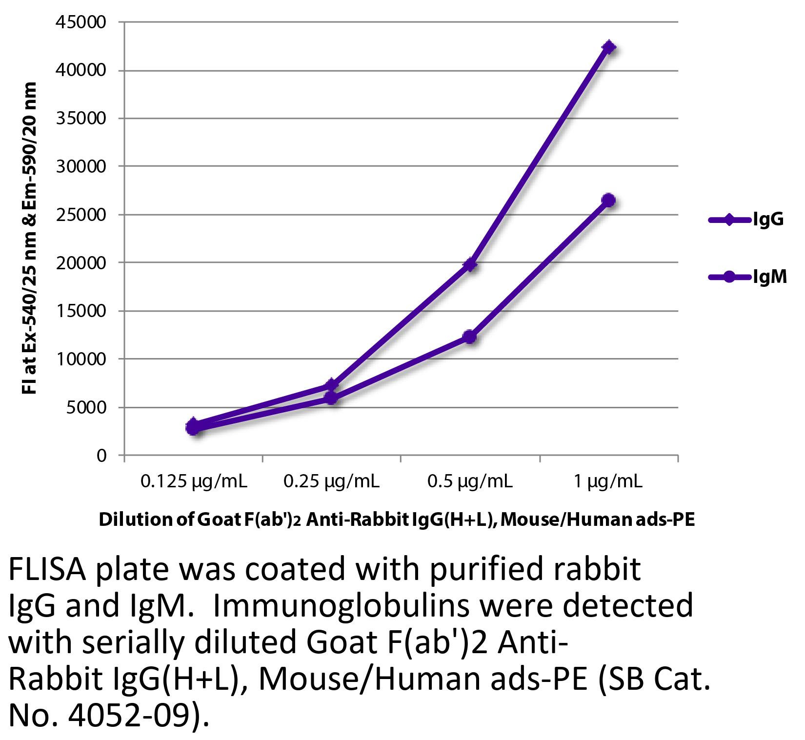 Goat F(ab')2 Anti-Rabbit IgG(H+L)-PE antibody with minimal reactivity to mouse and human proteins for use in flow cytometry assays.