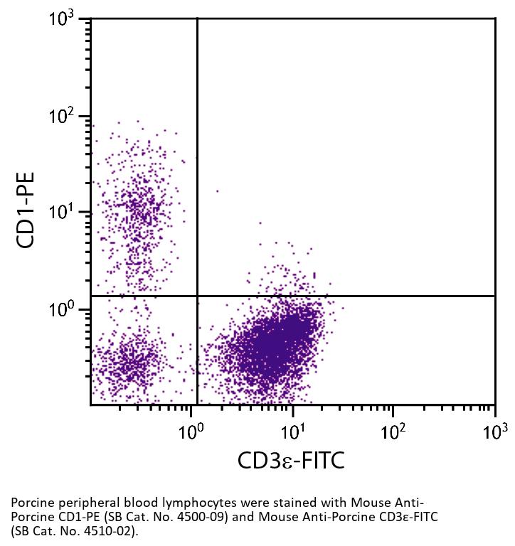 Porcine CD1 is a type I transmembrane glycoprotein and a member of the immunoglobulin superfamily of cell surface receptors. It has a domain organization similar to that of MHC class I molecules and is expressed in association with β2-microglobulin. CD1 is found on B cells, macrophages, and immature thymocytes. There is evidence for a role of CD1 in presentation of lipids and peptides to T cells.
