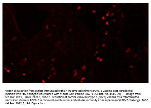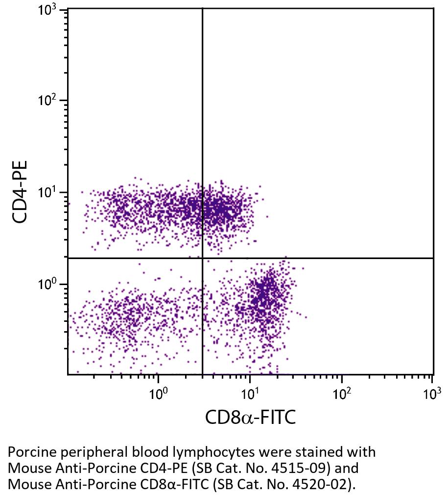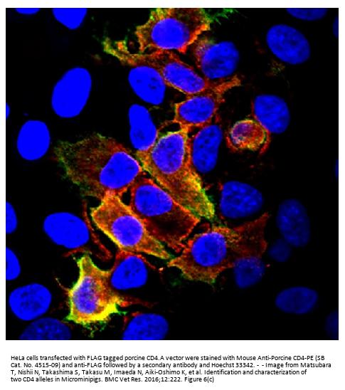 Porcine CD4 is a type I transmembrane glycoprotein and a member of the immunoglobulin superfamily of cell surface receptors. CD4 is an accessory molecule in the recognition of foreign antigens in association with MHC Class II molecules by T lymphocytes.