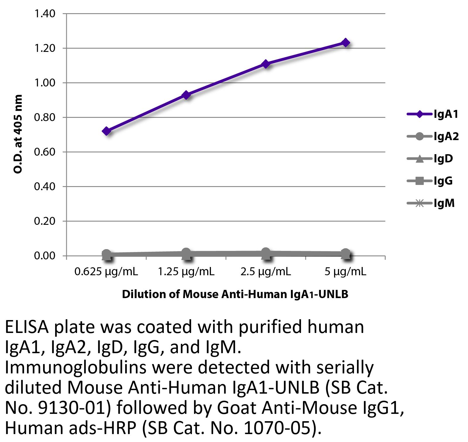 Purified Anti-Human IgA1 antibody for use in ELISA, flow cytometry, immunohistochemistry / immunocytochemistry, western blot, ELISpot, separation, depletion, and multiplex assays.