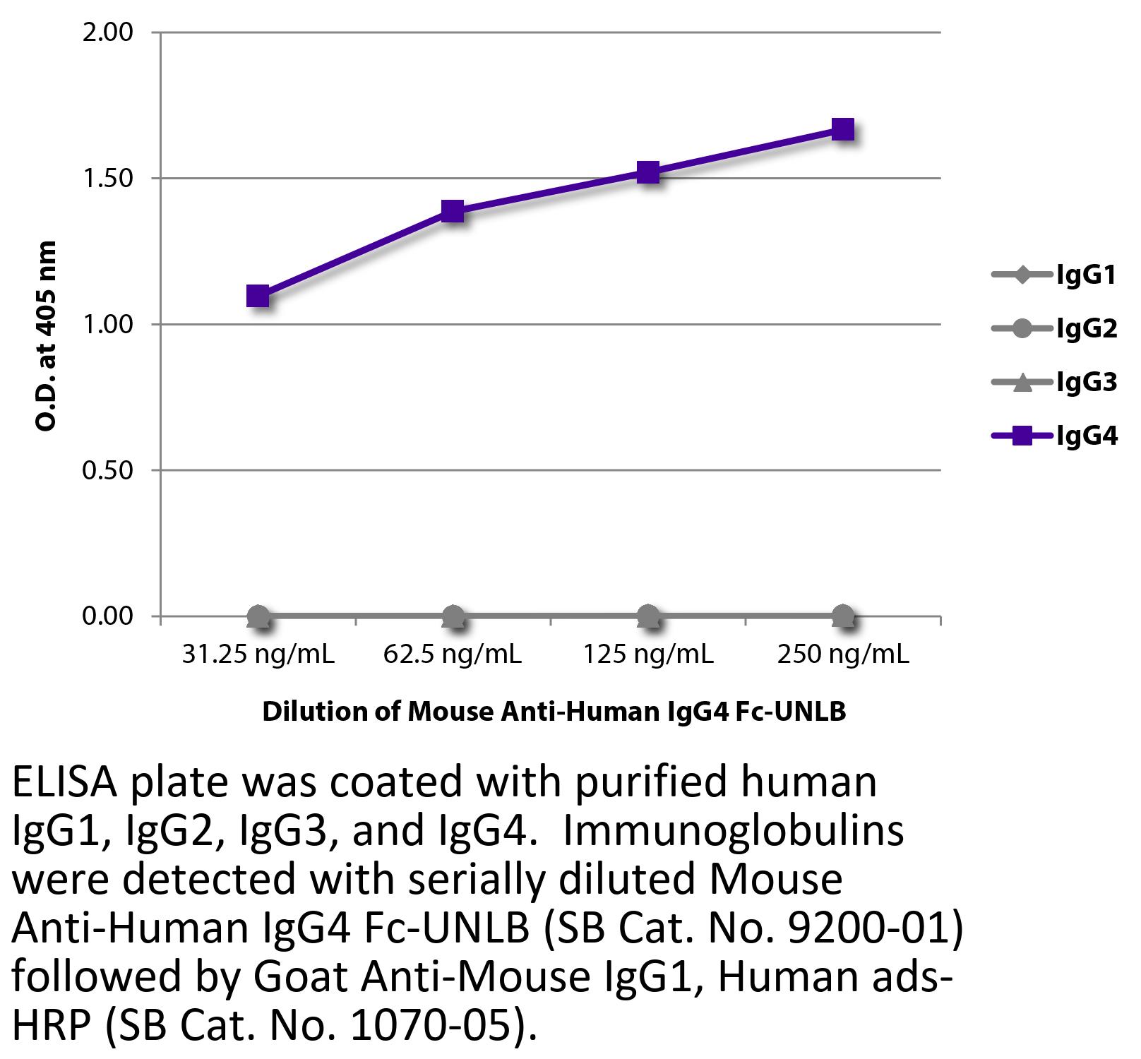 Purified Anti-Human IgG4 Fc antibody for use in ELISA, flow cytometry, immunohistochemistry / immunocytochemistry, western blot, microarray, purification, and multiplex assays.