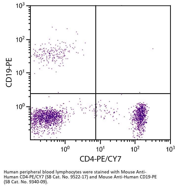 CD4 is a 55 kDa type I transmembrane glycoprotein and a member of the Ig-SF of cell surface receptors. It is expressed predominantly on the “helper/inducer” subpopulation of mature T lymphocytes and on monocytes and macrophages. Domains 1 and 2 bind to MHC Class II antigens, while domains 3 and 4 may be involved in cis interactions with the CD3/TCR complex. CD4 functions as an accessory molecule in the recognition of foreign antigens in association with MHC class II antigens by T cells.