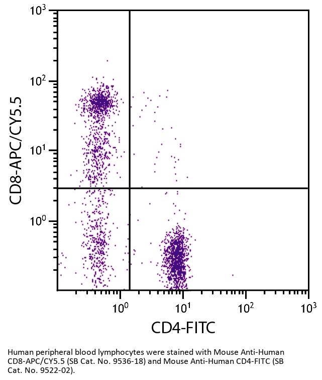CD8 is a 33 kDa transmembrane glycoprotein expressed as either a CD8αα homodimer or CD8αβ heterodimer. It is expressed on the “cytotoxic/suppressor” subpopulation of peripheral T cells. CD8 functions primarily as a coreceptor with MHC class I-restricted TCR’s in antigen recognition.