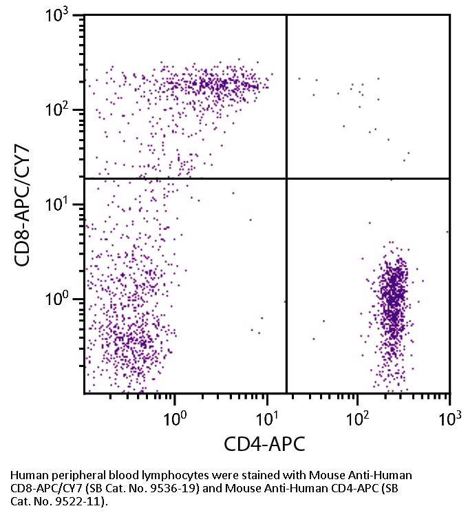 CD8 is a 33 kDa transmembrane glycoprotein expressed as either a CD8αα homodimer or CD8αβ heterodimer. It is expressed on the “cytotoxic/suppressor” subpopulation of peripheral T cells. CD8 functions primarily as a coreceptor with MHC class I-restricted TCR’s in antigen recognition.