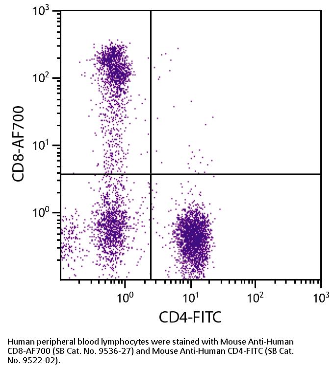 CD8 is a 33 kDa transmembrane glycoprotein expressed as either a CD8αα homodimer or CD8αβ heterodimer. It is expressed on the “cytotoxic/suppressor” subpopulation of peripheral T cells. CD8 functions primarily as a coreceptor with MHC class I-restricted TCR’s in antigen recognition.