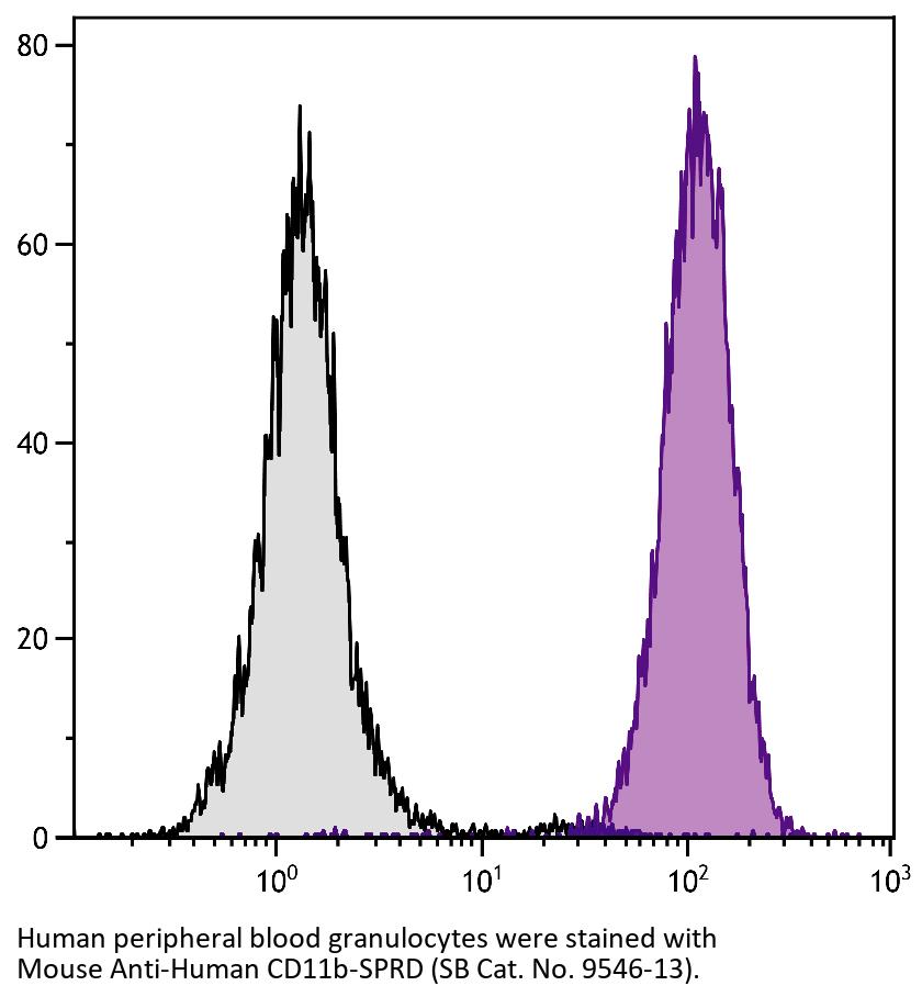 CD11b is the 165 kDa αM chain which combines with the CD18 β2 integrin subunit to form the Mac-1 heterodimer. It is expressed on activated lymphocytes, monocytes, granulocytes and a subset of NK cells. CD11b functions in cell-cell and cell-substrate interactions and is a ligand for C3bi, CD50 (ICAM-3), CD54 (ICAM-1) and CD102 (ICAM-2).