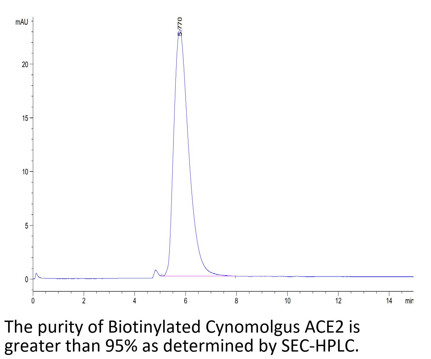 Recombinant Biotinylated Cynomolgus ACE2/ACEH Protein is expressed from HEK293 with His tag and Avi tag at the C-Terminus.It contains Gln18-Val739.