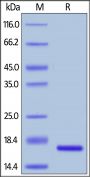 This protein carries no "tag". The protein has a calculated MW of 16.5 kDa. The protein migrates as 17 kDa±3 kDa when calibrated against Star Ribbon Pre-stained Protein Marker under reducing (R) condition (SDS-PAGE).