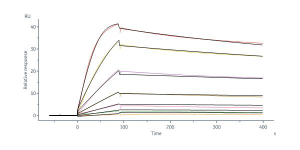 This protein carries a polyhistidine tag at the C-terminus. The protein has a calculated MW of 31.6 kDa. The protein migrates as 45-55 kDa when calibrated against Star Ribbon Pre-stained Protein Marker under reducing (R) condition (SDS-PAGE) due to glycosylation.