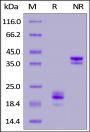 Biotinylated Rabbit CD3E&CD3G Heterodimer Protein, His, Avitag&Flag Tag is produced by co-expression of CD3E and CD3G, has a calculated MW of 18.2 kDa (CD3E) and 15.0 kDa (CD3G). Subunit CD3E carries a polyhistidine tag at the C-terminus, followed by an Avi tag and subunit CD3G is fused with a flag tag at the C-terminus. As a result of glycosylation, the protein migrates as 18 kDa, 21 kDa and 23 kDa under reducing (R) condition, and 36 kDa and 40-43 kDa under non-reducing (NR) condition (SDS-PAGE).
