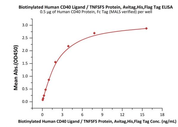Biotinylated Human CD40 Ligand / TNFSF5 Protein, Avitag™,His,Flag Tag, active trimer (MALS verified) Europäischer Partner