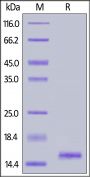 This protein carries a polyhistidine tag at the N-terminus. The protein has a calculated MW of 15.0 kDa. The protein migrates as 15-16 kDa under reducing (R) condition (SDS-PAGE).