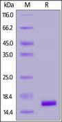 This protein carries a polyhistidine tag at the C-terminus. The protein has a calculated MW of 15.7 kDa. The protein migrates as 15-17 kDa under reducing (R) condition (SDS-PAGE).
