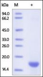 This protein carries a polyhistidine tag at the N-terminus. The protein has a calculated MW of 16.0 kDa. The protein migrates as 16 kDa under reducing (R) condition (SDS-PAGE).
