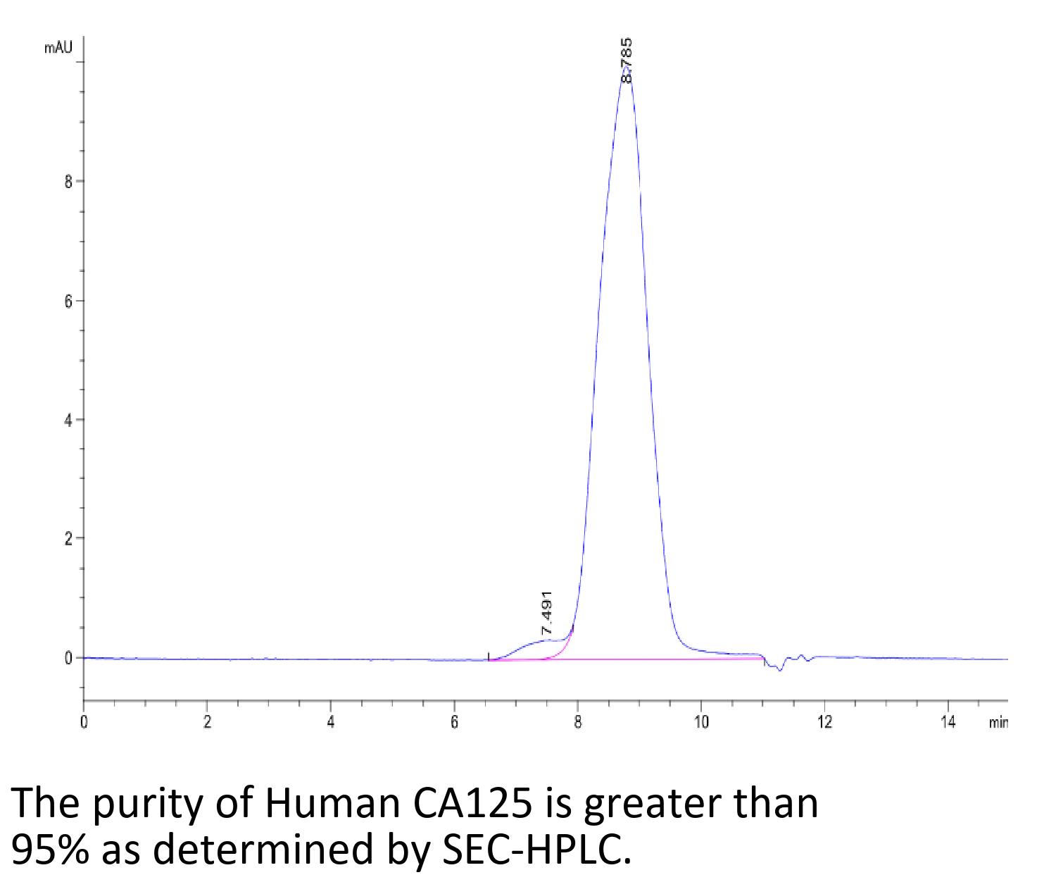 Recombinant Human CA125/MUC16 Protein is expressed from HEK293 with His tag and Avi tag at the C-Terminus.It contains Gly12660-Met12923.