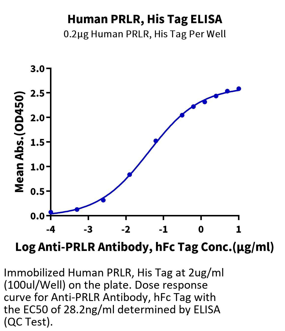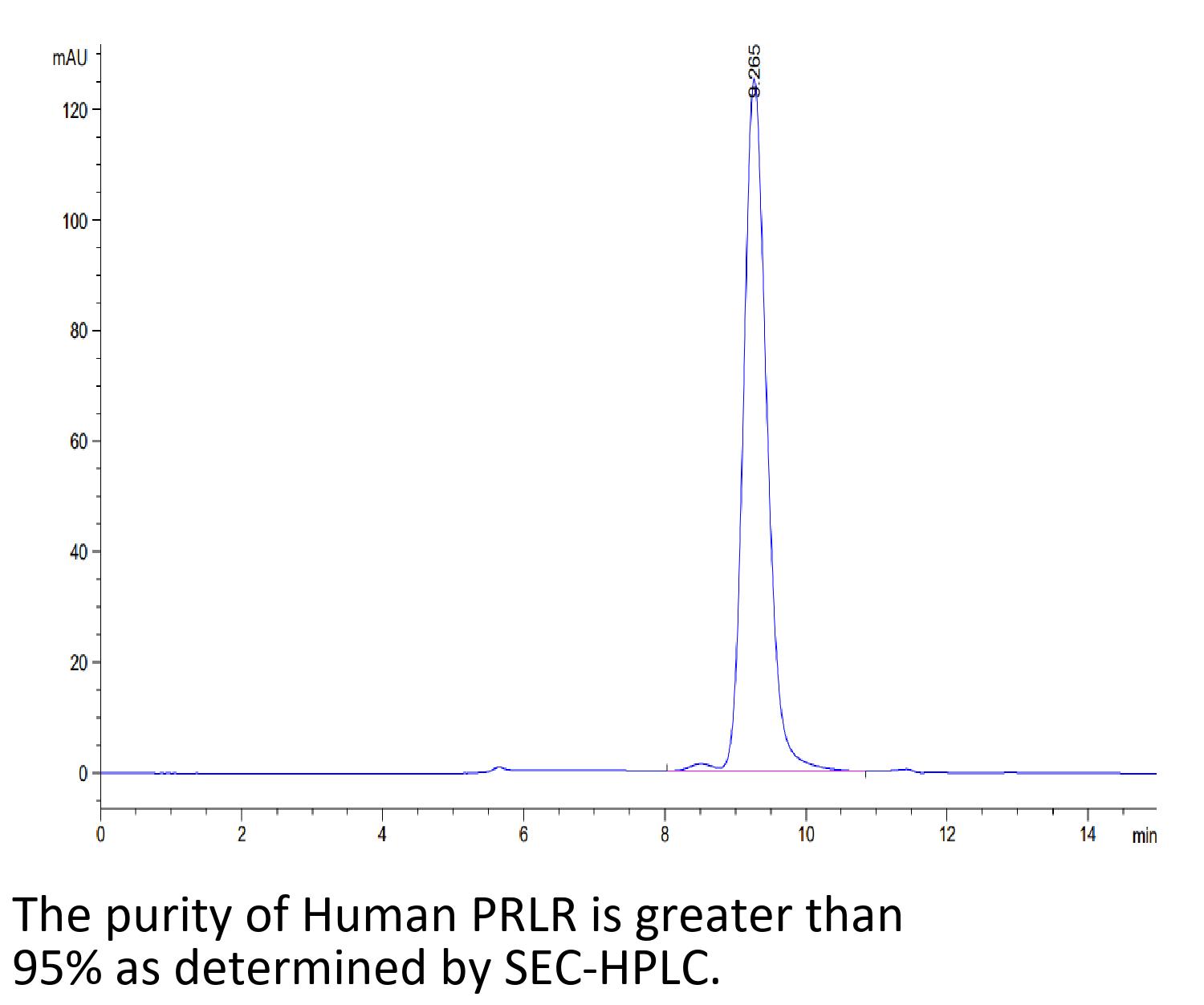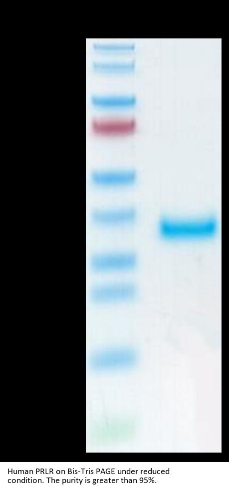 Recombinant Human PRLR Protein is expressed from HEK293 with His tag at the C-Terminus.It contains Gln25-Asp234.