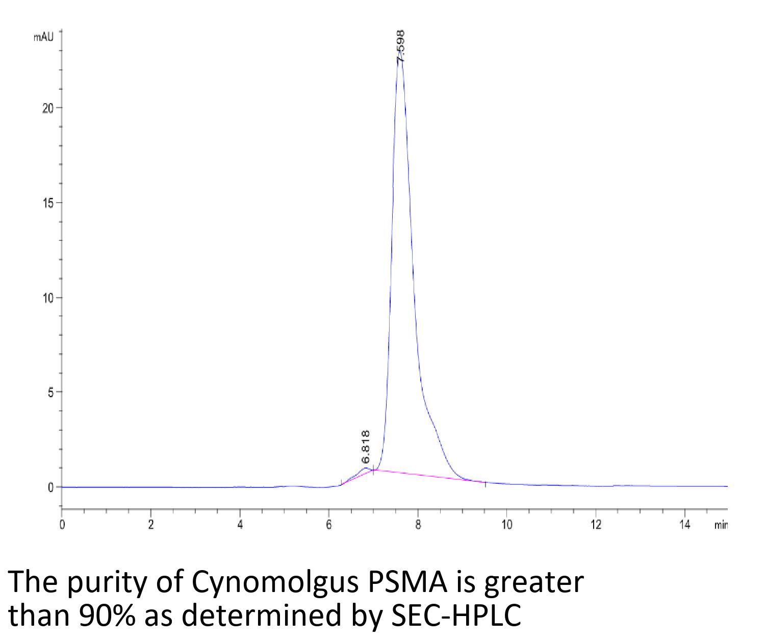 Recombinant Cynomolgus PSMA/FOLH1 Protein is expressed from HEK293 with His tag at the N-Terminus.It contains Lys44-Ala750.