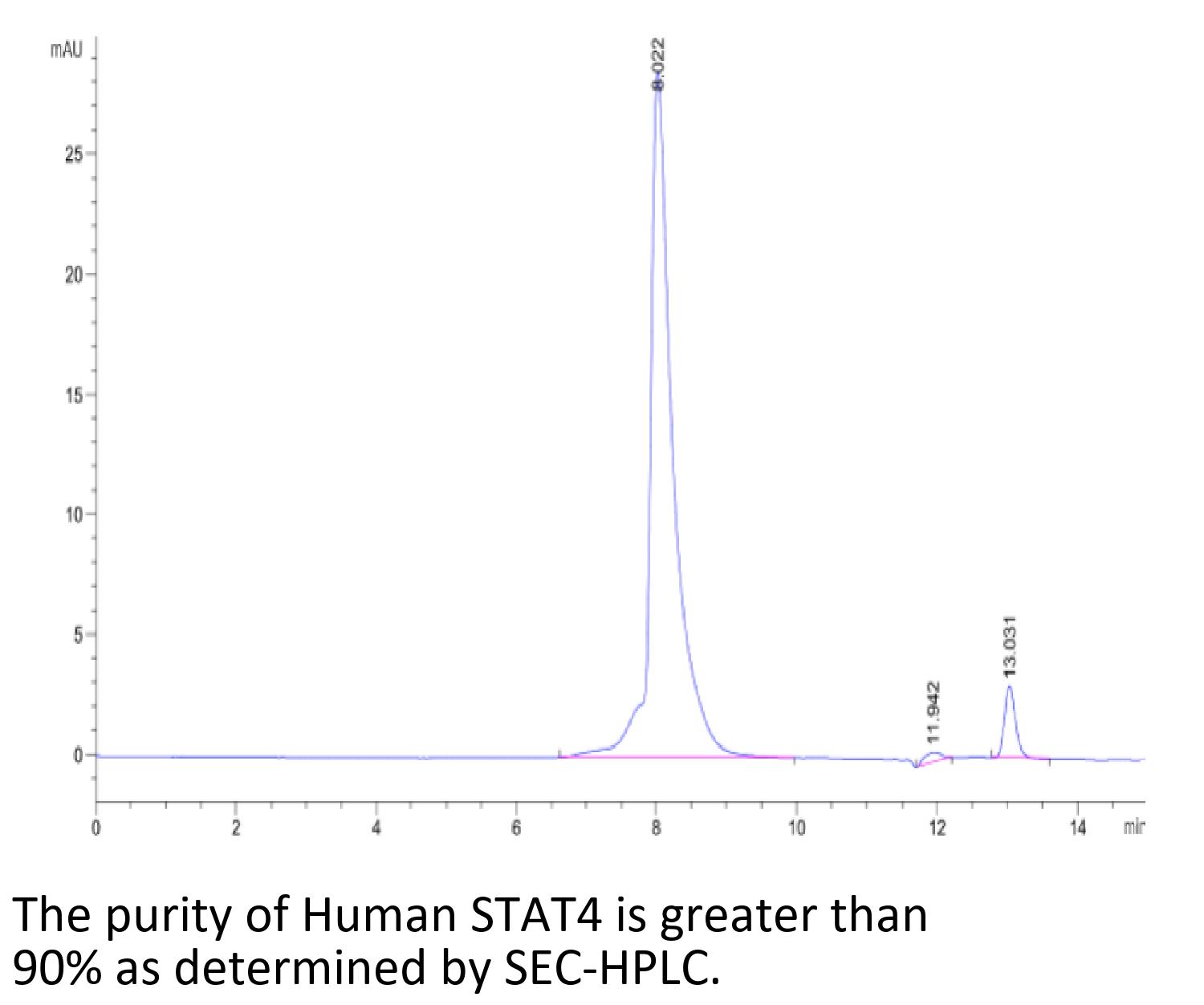 Recombinant Human STAT4 Protein is expressed from Baculovirus-Insect Cells(Sf9) with His tag at the N-terminus.It contains Met1-Glu748.