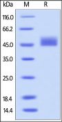 This protein carries a human IgG1 Fc tag at the C-terminus. The protein has a calculated MW of 39.5 kDa. The protein migrates as 45-55 kDa under reducing (R) condition (SDS-PAGE).