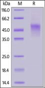 This protein carries a polyhistidine tag at the C-terminus, followed by an Avi tag (Avitag™). The protein has a calculated MW of 28.7 kDa. The protein migrates as 40-55 kDa when calibrated against Star Ribbon Pre-stained Protein Marker under reducing (R) condition (SDS-PAGE) due to glycosylation.