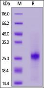 This protein carries a polyhistidine tag at the C-terminus. The protein has a calculated MW of 20.8 kDa. The protein migrates as 25-30 kDa when calibrated against Star Ribbon Pre-stained Protein Marker under reducing (R) condition (SDS-PAGE) due to glycosylation.