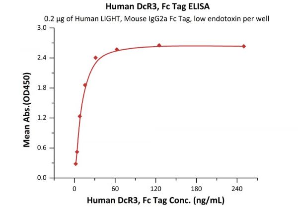 Tumor necrosis factor receptor superfamily member 6B (TNFRSF6B) is also known as Decoy Receptor 3 (DcR3), Decoy receptor for Fas ligand and M68, which belongs to the tumor necrosis factor receptor superfamily. TNFRSF6 is a soluble protein which contains four TNFR-Cys repeats. Unlike most of the other members of TNFR superfamily, TNFRSF6 is a soluble protein which contains no transmembrane domain. TNFRSF6B acts as a decoy receptor that competes with death receptors for ligand binding. The protein is postulated to play a regulatory role in suppressing FasL- and LIGHT-mediated cell death and T cell activation as well as to induce angiogenesis via neutralization of TL1A.