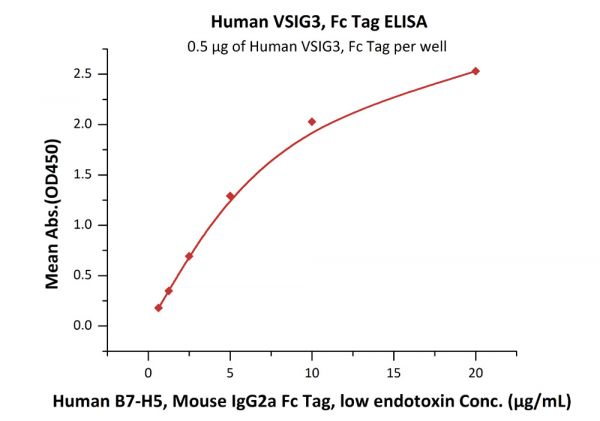 VSIG3, also known as IGSF11, BT-IgSF, and CLMP, is a homophilic adhesion molecule that preferentially expressed in the brain. The function of VSIG3 is to stimulate cell growth through homophilic interactions. In clinical, the VSIG3 has been reported to as a novel target for cancer immunotherapy of gastrointestinal and hepatocellular carcinomas. In addition, VSIG-3 is also a ligand of B7 family member VISTA/PD-1H and inhibits human T-cell functions through a novel VSIG-3/VISTA pathway. VSIG-3/VISTA co-inhibitory pathway may provide new strategies for the treatment of human cancers and autoimmune disorders.