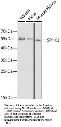 Recombinant fusion protein containing a sequence corresponding to amino acids 50-384 of human SPHK1 (NP_001136074.1).