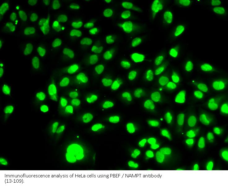 Recombinant fusion protein containing a sequence corresponding to amino acids 1-280 of human PBEF / NAMPT (NP_005737.1).