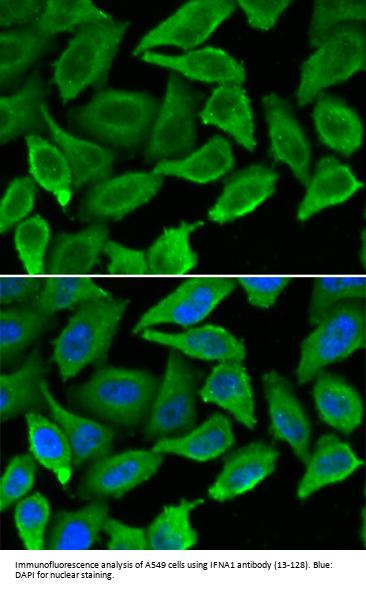 Recombinant fusion protein containing a sequence corresponding to amino acids 25-155 of human IFNA1 (NP_076918.1).