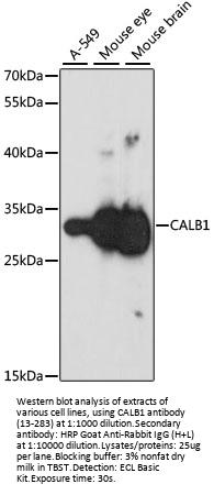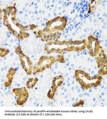 Recombinant fusion protein containing a sequence corresponding to amino acids 1-261 of human CALB1 (NP_004920.1).