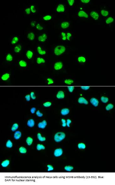 This gene encodes a member of the DNA mismatch repair MutS family. In E. coli, the MutS protein helps in the recognition of mismatched nucleotides prior to their repair. A highly conserved region of approximately 150 aa, called the Walker-A adenine nucleotide binding motif, exists in MutS homologs. The encoded protein heterodimerizes with MSH2 to form a mismatch recognition complex that functions as a bidirectional molecular switch that exchanges ADP and ATP as DNA mismatches are bound and dissociated. Mutations in this gene may be associated with hereditary nonpolyposis colon cancer, colorectal cancer, and endometrial cancer. Transcripts variants encoding different isoforms have been described.