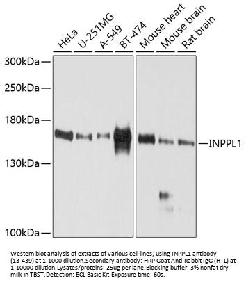 Recombinant fusion protein containing a sequence corresponding to amino acids 100-310 of human INPPL1 (NP_001558.3).