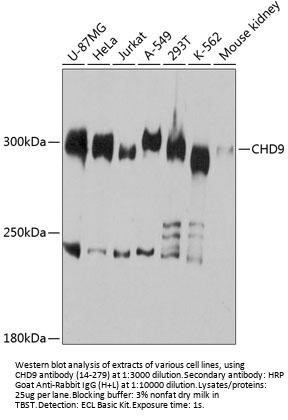 Recombinant fusion protein containing a sequence corresponding to amino acids 85-190 of human CHD9 (NP_079410.4).