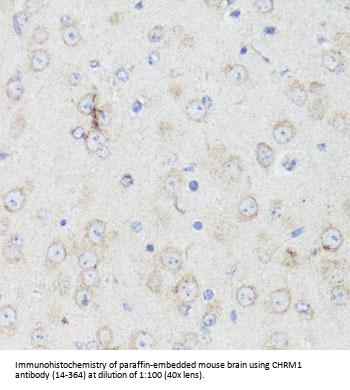 A synthetic peptide corresponding to a sequence within amino acids 400 to the C-terminus of human CHRM1 (NP_000729.2).
