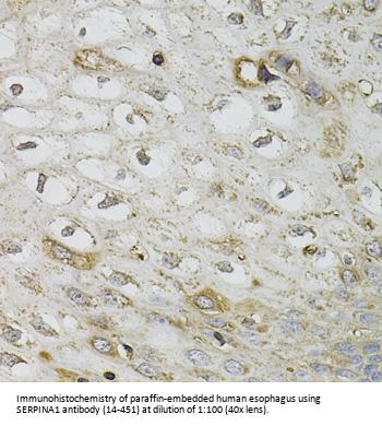 The protein encoded by this gene is secreted and is a serine protease inhibitor whose targets include elastase, plasmin, thrombin, trypsin, chymotrypsin, and plasminogen activator. Defects in this gene can cause emphysema or liver disease. Several transcript variants encoding the same protein have been found for this gene.