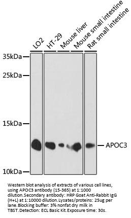 Apolipoprotein C-III is a very low density lipoprotein (VLDL) protein. APOC3 inhibits lipoprotein lipase and hepatic lipase; it is thought to delay catabolism of triglyceride-rich particles. The APOA1, APOC3 and APOA4 genes are closely linked in both rat and human genomes. The A-I and A-IV genes are transcribed from the same strand, while the A-1 and C-III genes are convergently transcribed. An increase in apoC-III levels induces the development of hypertriglyceridemia.