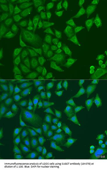 Recombinant fusion protein containing a sequence corresponding to amino acids 1-250 of human SUGCT (NP_001180240.1).