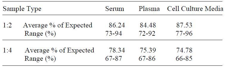 This ELISA kit shows no cross-reactivity with any of the following cytokines tested: human Angiogenin, BDNF, BLC, ENA-78, FGF- 4, IL-1 alpha, IL-1 beta, IL-2, IL-3, IL-4, IL-5, IL-6, IL-7, IL-8, IL-9, IL-10, IL-11, IL-12 p70, IL-12 p40, IL-13, IL-15, I-309, IP-10, G-CSF, GM-CSF, IFN-gamma, Leptin (OB), MCP-1, MCP-3, MDC, MIP-1 alpha, MIP-1 beta, MIP-1 delta, MMP-1, - 2, -3, -10, PARC, RANTES, SCF, TARC, TGF-beta, TIMP-1, TIMP-2, TNF-alpha, TNF-beta, TPO, VEGF.