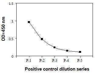 NIH3T3 cells were treated with Anisomycin at 37°C for 30 min. Solubilize cells at 4 x 107 cells/ml in Cell Lysate Buffer. Serial dilutions of lysates were analyzed in this ELISA. Please see step 3 of Part VI Reagent Preparation for detail.