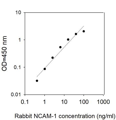 This ELISA antibody pair detects Rabbit NCAM-1 and Human NCAM-1. Other species not determined. This ELISA kit shows no cross-reactivity with the following cytokines tested: rabbit IL-1alpha, IL-1beta, IL-8, IL-17A, IL-21, Leptin, MIP-1beta, MMP-9, TNF alpha