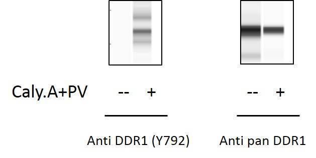 Jurkat cells were treated with Calyculin A and Pervanadate. Cell lysates were analyzed using this phosphoELISA and Western Blot.
