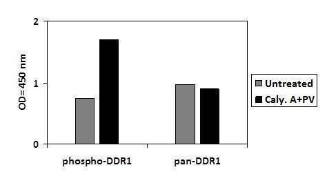 This ELISA kit recognizes Human DDR1 phosphorylated at site Tyrosine-792.