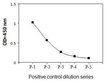 Jurkat cells were treated with H2O2 at 37°C for 2 min. Solubilize cells at 4 x 107 cells/ml in Cell Lysate Buffer. Serial dilutions of lysates were analyzed in this ELISA. Please see step 3 of Part VI Reagent Preparation for detail.