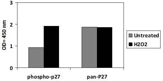 The antibody pair provided in this kit recognizes human p27/Kip1 Phosphorylated at site Threonine-198.