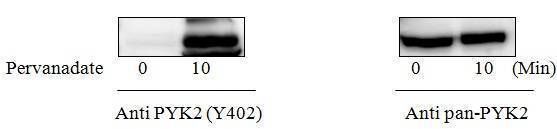 The antibody pair provided in this kit recognizes PYK2 phosphorylated at Tyrosine-402.