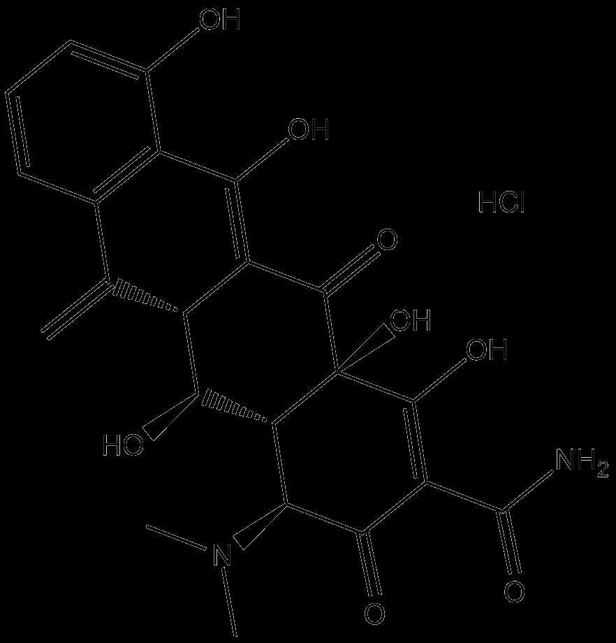 Smiles CN(C)C1C2C(C3C(=C)C4=C(C(=CC=C4)O)C(=C3C(=O)C2(C(=C(C1=O)C(=O)N)O)O)O)O.Cl