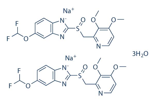 Smiles O.O.O.[Na+].[Na+].COC1=C(OC)C(=NC=C1)C[S](=O)C2=NC3=C([N-]2)C=CC(=C3)OC(F)F.COC4=C(OC)C(=NC=C4)C[S](=O)C5=NC6=C([N-]5)C=CC(=C6)OC(F)F