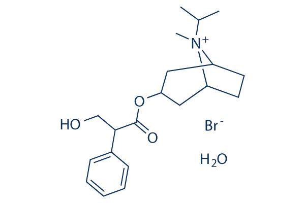 Ipratropium bromide (Atrovent, Sch 1000) monohydrate is an antagonist of muscarinic acetylcholine receptors (mAChR) with IC50 of 2.9 nM, 2.0 nM, and 1.7 nM for M1, M2, and M3 receptors, respectively.